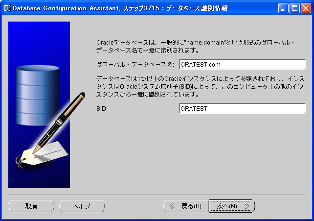 dbca(Database Configuration Assistant)を使用してデータベースの作成