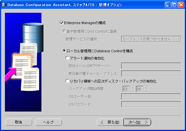 「Enterprise Managerの構成」のチェックを外せば良いが、せっかくなので使いたいので、インストールします。