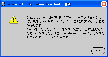 リスナーが無いとこの後のデータベースの作成時のEnterpriseManagerの部分で怒られる。→ 画像