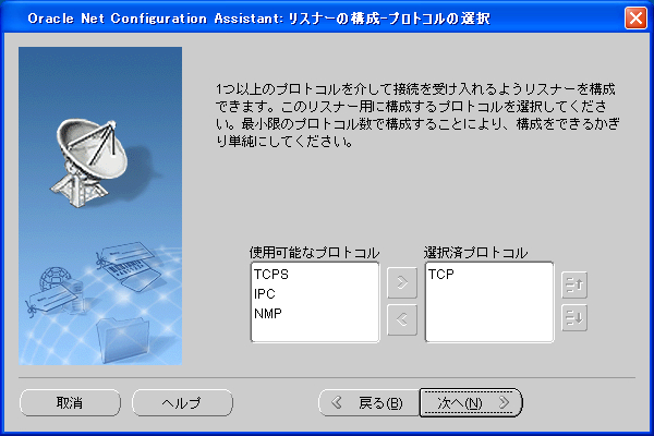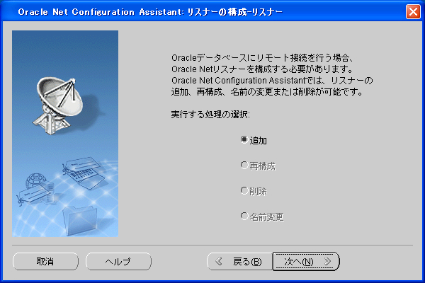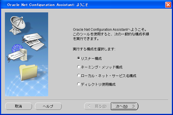 netca(Net Configuration Assistant)を使用してリスナーの作成