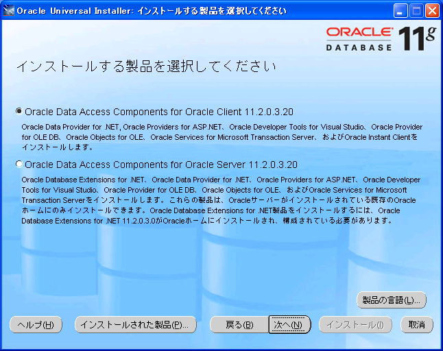 Oracle Data Access Components (ODAC) for Windows のインストール