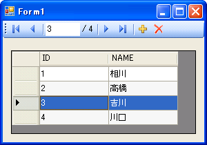 画面上部にセレクタ用部品「BindingNavigator」あるだけで