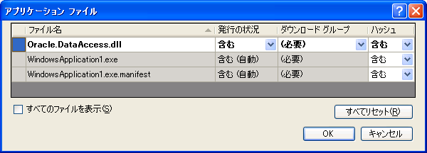 [発行]タブの「アプリケーションファイル」に、「Oracle.DataAccess.dll」を含め、発行する。