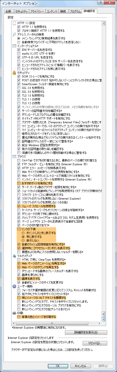 各種設定