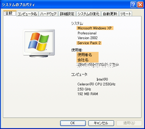 が表示されている場合、『C:\WINDOWS\system32\oeminfo.ini』・『C:\WINDOWS\system32\oemlogo.bmp』にて参照・編集可能です。