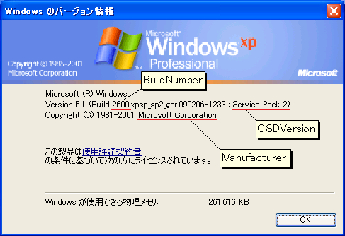 | CSDVersion | サービスパック情報 | 画像1 | systeminfoのOS バージョン: |