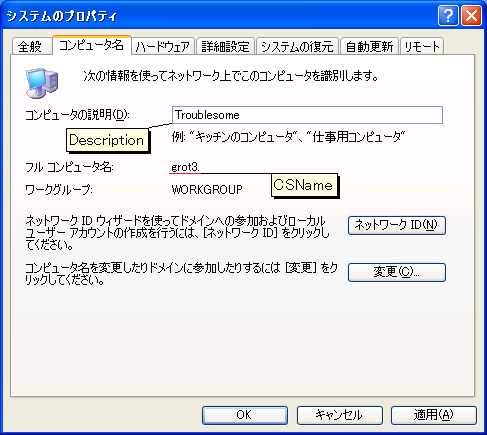 | Description | コンピュータの説明 | 画像2 | net config serverのサーバー コメント |