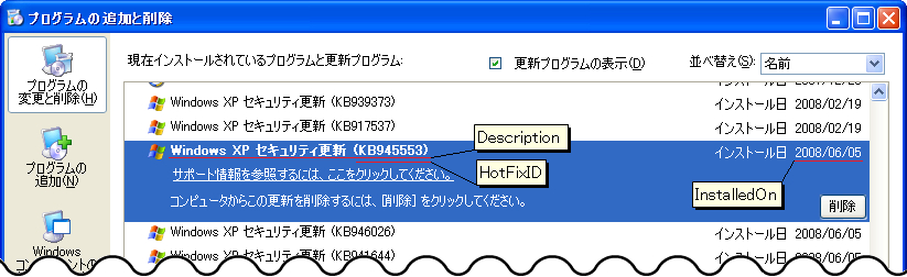 | Description | 詳細な名前 | Windows XP セキュリティ更新 (KB945553) |