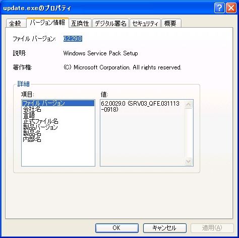 指定した展開先にフォルダ『update』があるので、その中の『update.exe』のプロパティ(画像)から確認する。