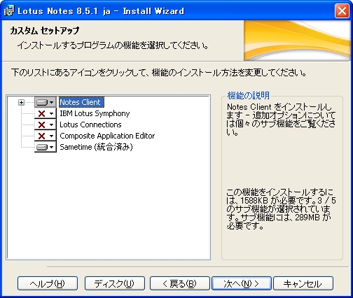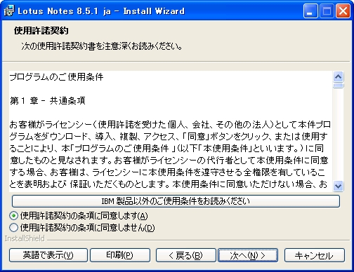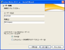 実行例:Setup.exe /s /V"PROGDIR=C:\Lotus\Notes DATADIR=C:\Lotus\Notes\Data"