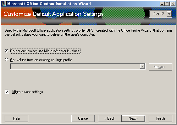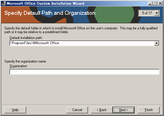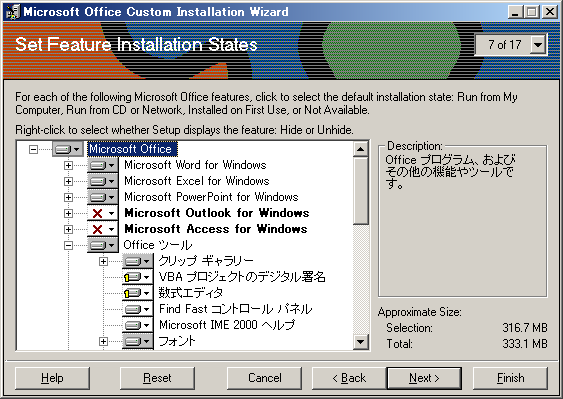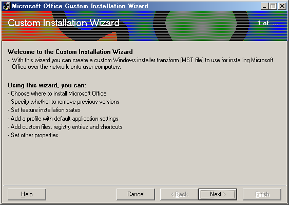 【スタート】→【プログラム】→【Microsoft Office Tools】→【Microsoft Office 2000 Resource Kit Tools】→【Custom Installation Wizard】