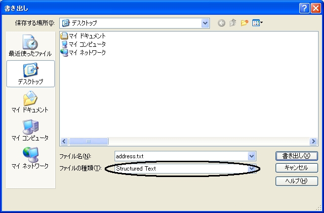 3. ファイルの種類を【Structured Text】を選択し、txtファイルを作成する:画像