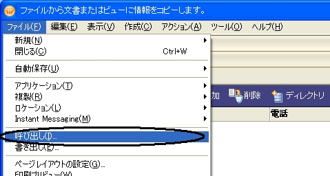 - wabファイルを直接開き、【ファイル】→【エクスポート】→【アドレス張】の手順でCSVファイル出力