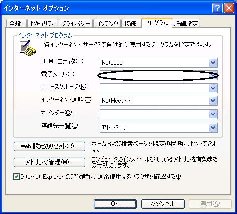 『[スタート]メニューでの表示』・『インターネットオプションのプログラム』から ≪電子メール≫のリスト内が空になる事がある。