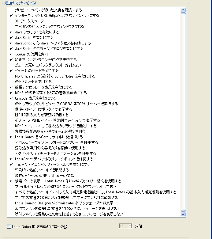 | AutoLogoffMinutes | 0 または 1以上の数字 | Lotus Notes ID を自動的にロック | |