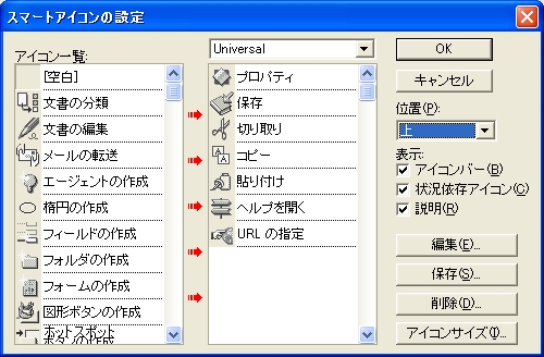 | WinNTIconPos | スマートアイコンのポジション 左:1 上:2 右:3 下:4 浮動:5 | 位置 | |