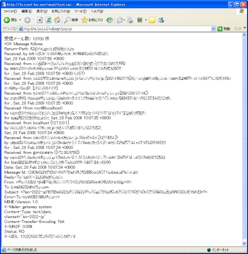 [TOP 1 0]とする事で、先頭のメールのヘッダー部分のみを表示することができます。