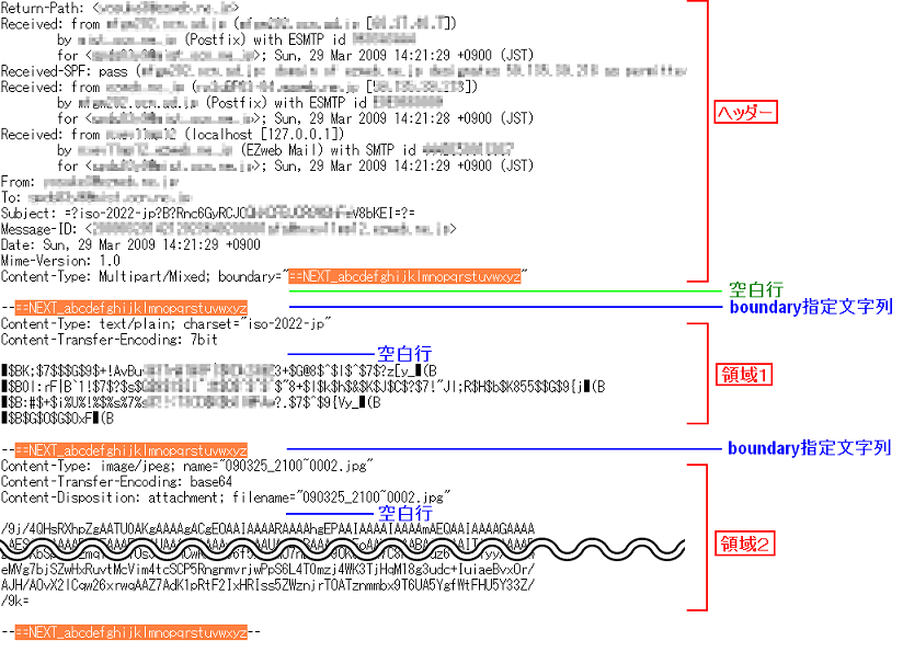 - ヘッダーの中に『boundary』の指定がある場合、マルチパート(複数の領域)で構成されています。