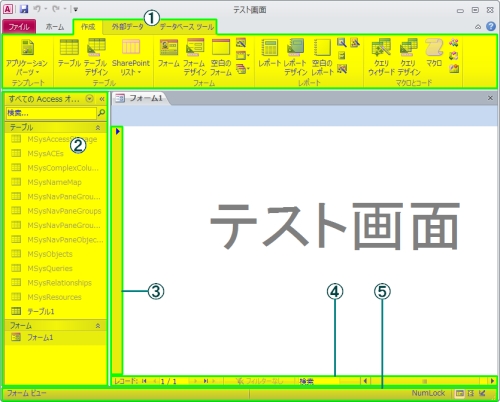 通常通りアクセスを開き、フォームを開いた状態です。