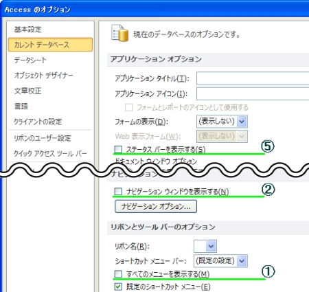 ※【ファイル】 → 【オプション】 → 【カレント データベース】の『ナビゲーション オプション』ボタンから、