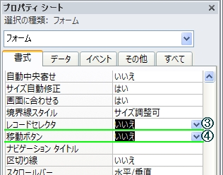 また、フォームのプロパティを開き、下図設定を『いいえ』にすることにより表示/非表示の設定が出来ます。