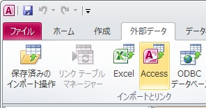 - [外部データ]タブのインポートとリンクの中から【Access】をクリックする。