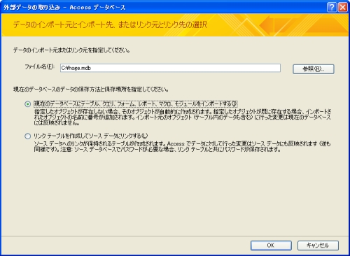 - インポート元のAccessファイルを選択し、【OK】をクリックする。