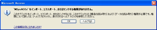 'MSysACEs'をインポート、エクスポート、またはリンクする権限がありません。